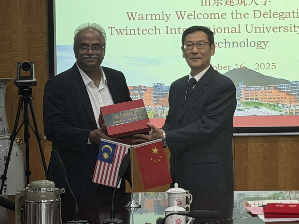 On October 16, 2023, Twintech International University College of Technology achieved significant progress in its internationalization development strategy. A delegation led by Vice Chancellor Prof. Dr. Selvaraj Oyyan Pillay, including Associate Professor Abus Qamar, Director of the International Office, and their China affairs representative team, visited Shandong Jianzhu University for exchange and signed a Memorandum of Understanding (MoU). This collaboration marks a further expansion of Twintech’s partnership network in China’s higher education sector, injecting new vitality into the educational exchanges between Malaysia and China. Deepening International Cooperation, Expanding New Educational Frontiers During the visit, the Twintech delegation held productive talks with Prof. Zhang Zhigang, Vice President of Shandong Jianzhu University, and relevant department heads. Vice Chancellor Selvaraj provided a detailed introduction to Twintech’s development history and